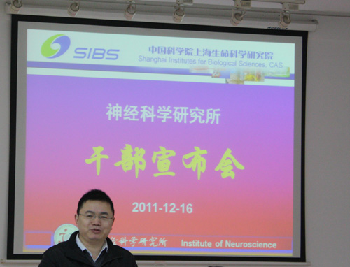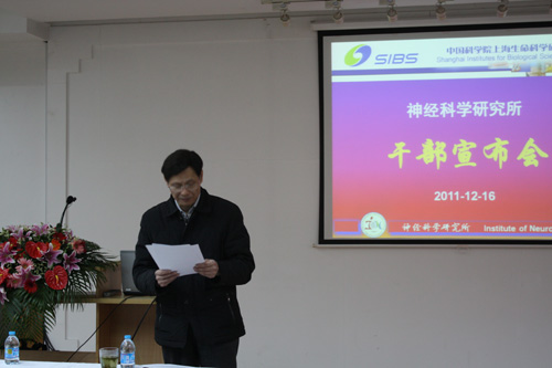 12月16日,上海生科院黨委書記兼副院長張建新出席神經(jīng)所干部宣布會(huì),宣布王以政研究員擔(dān)任神經(jīng)所副所長,舒友生研究員擔(dān)任神經(jīng)所黨委副書記,王佐仁研究員擔(dān)任神經(jīng)所所長助理。神經(jīng)所領(lǐng)導(dǎo)班子成員、部分PI及管理人員參加了會(huì)議。