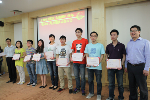 最后,大會對優秀團組織和個人進行了表彰。神經所團委被評為2011年度中科院上海生命科學研究院五四紅旗團組織;團委書記李晴憶被評為2011年度中科院上海生命科學研究院優秀團干部;宣傳委員劉楠、焦明被評為2011年度中科院上海生命科學研究院優秀團員。