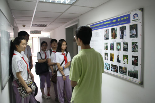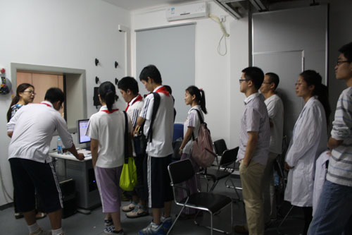 6月28日下午,位育初級中學新入團的學生團員和帶隊老師共30多人來神經所參觀,神經所所長助理王佐仁研究員向大家簡要介紹了神經所與位育中學多年來科普結對的概況,于翔研究員為同學們作了一場通俗易懂的“發育早期豐富環境飼養對神經環路發育的影響”的科普報告,提問過程中,同學們不僅對神經發育很好奇,而且對PPT中標準差的圖形也顯示出濃厚的興趣。王開宇同學通過詼諧幽默的語言和生動的圖像,形象地介紹了神經所學生們學習、生活和開展志愿者活動的情況。最后,團員們分五組分別參觀了郭愛克、于翔、杜久林、張鳴沙、舒友生、張旭、蔡時青、李澄宇、王佐仁九位老師的實驗室,以及光學成像實驗室和核磁共振實驗室,各組聯絡人邊文杰、張柯、周詩妍、劉昱、馬倩茹、胡文欽、王開宇、劉喜娟、劉輝、俞文文、劉鼎、朱嘉向同學們仔細講解了本組科學研究的內容和實驗方法,同學們邊聽邊看,對神經科學研究和實驗表示出濃厚的興趣。