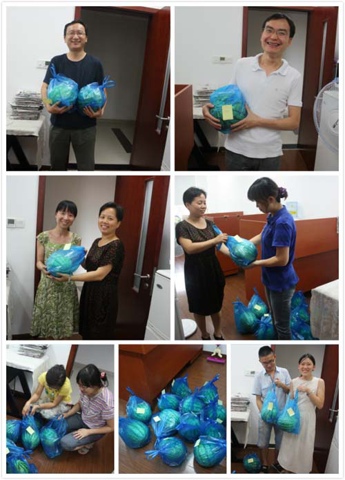 五月中旬,在生科院工會(huì)組織下,我所部分職工子女參加了“迎六一綠色科普親子活動(dòng)”,在松江的試驗(yàn)田里,小朋友們親手種下了一棵棵的西瓜秧苗。之后,很多孩子經(jīng)常在家里念叨西瓜苗長(zhǎng)大了嗎?什么時(shí)候結(jié)瓜呀?在孩子們的期盼下,8月14日下午,孩子們終于等來(lái)了好消息,家長(zhǎng)們開(kāi)心地領(lǐng)取了孩子們的勞動(dòng)果實(shí),有的還特地與同事們分享了這份收獲的喜悅。