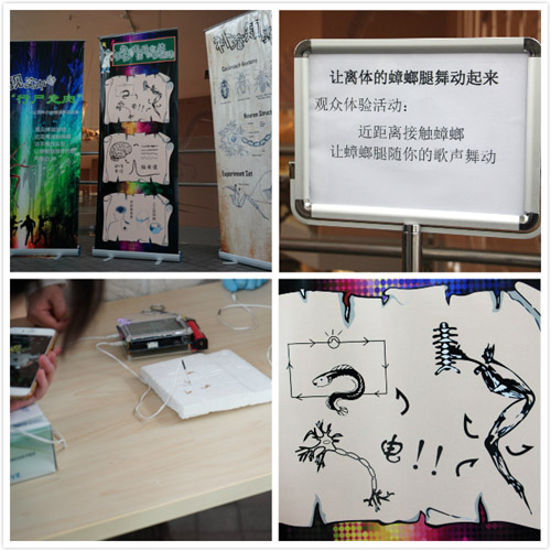 實驗中,觀眾雖然對蟑螂感到害怕,但同時也極其好奇如何讓蟑螂腿跟隨音樂起舞。當聽說神經元通過電信號來傳遞信息,觀眾開始慢慢領悟到,可以通過電刺激神經元,進而控制蟑螂腿的運動。很多觀眾親自錄制音樂對蟑螂腿進行電刺激,當離體的蟑螂腿隨著現場錄制的拍掌節奏而跳動時,觀眾的好奇心得到了充分的滿足。對實驗特別感興趣的觀眾,科普志愿者還贈予了事先準備好的300多張光盤,供大家回家進一步研究實驗原理和步奏。