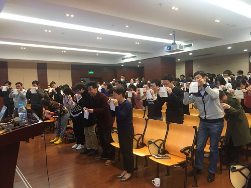 楊國英女士首先回顧了自己在神經所求學科研的經歷,再介紹了她創業的心路歷程,她認為現階段取得的成績與在神經所受到的專業的科學訓練是密不可分的。她和她的團隊帶來的MSS科學發聲,便是將傳統的呼吸發聲方法與神經生物學、解剖學等科學結合,從科學的角度幫助音樂人訓練聲音,拓寬音域,也教授遭受喉部或聲帶問題困擾的人群科學發聲,保護嗓子。楊國英女士的講座聲情并茂,運用案例教學,深入淺出的為大家解析了對于自己發聲的困惑,與會者均饒有興致的做起了“健聲操”,上了一堂具有國際領先水準的專業音樂訓練課。
