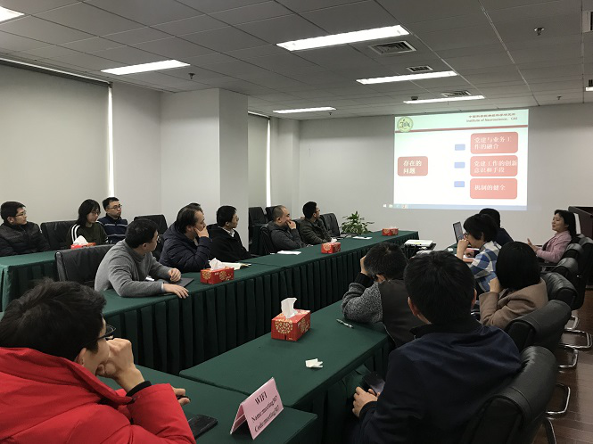 會(huì)上,全體黨員認(rèn)真填寫了《黨支部評(píng)議表》、《黨員民主測(cè)評(píng)表(支部書記)》、《黨員民主測(cè)評(píng)表(所有黨員)》。全體黨員圍繞黨建與科研如何融合、黨建工作的創(chuàng)新意識(shí)與方式、如何健全支部黨建工作機(jī)制等支部存在的問題,開展了熱烈的批評(píng)和自我批評(píng)。作為神經(jīng)科學(xué)研究所的先鋒模范組織,在摸著石頭過河,沒有前人經(jīng)驗(yàn)可以借鑒的前提下,需要群策群力,集思廣益,不怕犯錯(cuò),通過敢于擔(dān)當(dāng)?shù)木瘢粩嗲斑M(jìn)。