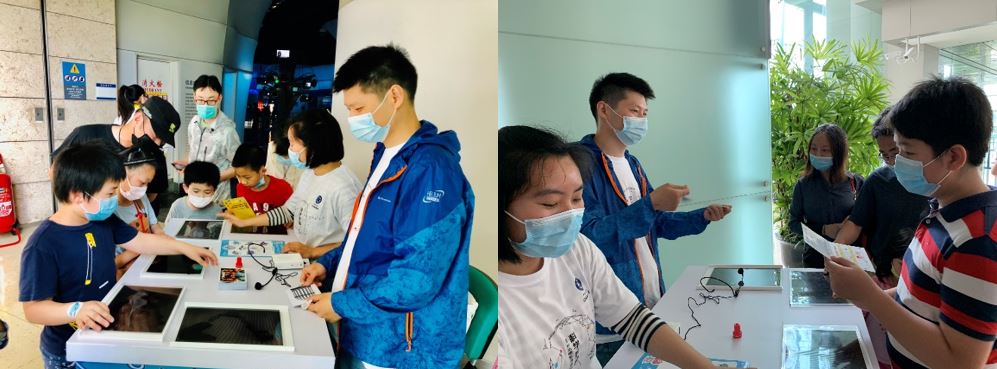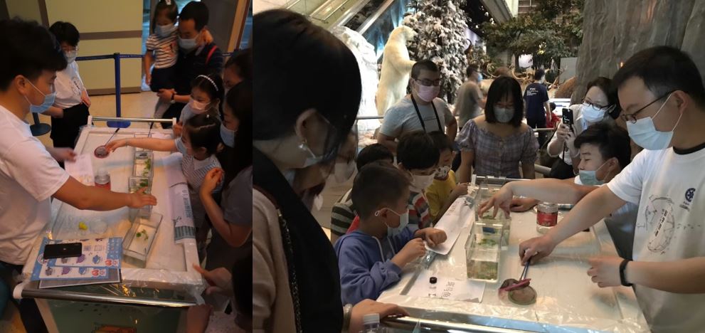 志愿者展示各種顏色的熒光蛋白轉基因斑馬魚、透明斑馬魚、斑馬魚胚胎,小朋友們初步了解了基因改造的原理和流程,以及轉基因斑馬魚對科學的貢獻,感受到了生物工程技術的神奇。