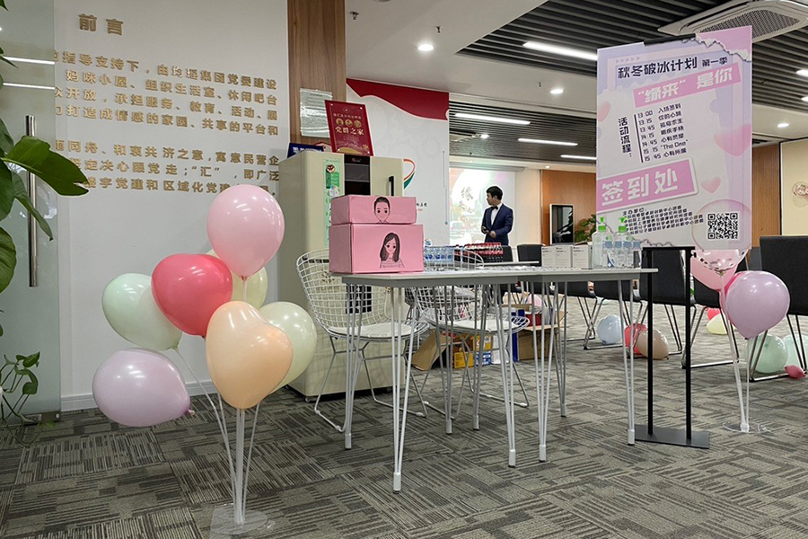 11月20日上午,經(jīng)過工作人員精心布置,活動場地充滿了溫馨浪漫的互動氛圍,等待著參加活動的嘉賓們的到來。