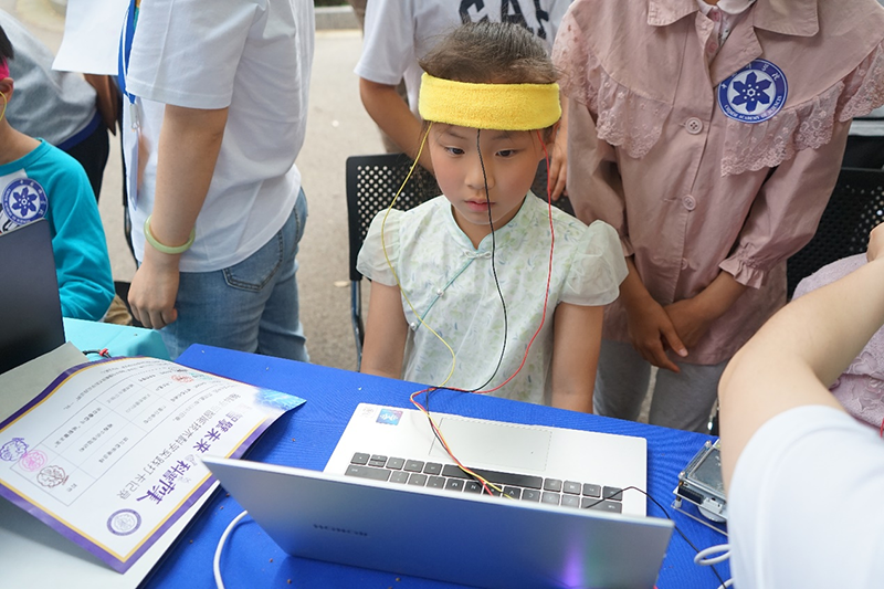 5月13日下午,在“腦智擘未來”科普市集上,近千名中小學生及陪同家長體驗了腦電協作、腦電對抗、僵尸跳舞、力量召喚閃電、斑馬魚的裙擺、眼控避障、視覺錯覺、假手錯覺、斑馬魚明暗選擇、多感覺整合、襁褓中的實驗動物、大腦地圖的VR、心靈的窗戶、腦功能水平測試等14個生動有趣的科普實驗,系列實驗由腦智卓越中心科普協會和相關實驗室根據日常科學實驗和最新科研成果原創制作而成,實驗充分結合公眾對社交化、娛樂化、游戲化等科普內容的偏好,將日常看不見、摸不著、感受不到的腦電、肌電信號,采取信息化手段和趣味性比賽、協同合作等方式呈現出來,使得曾經“高冷”的專業操作,以更多元、更新潮的方式綻放科學的魅力,體驗現場充滿了緊張與期待、驚奇與歡笑。