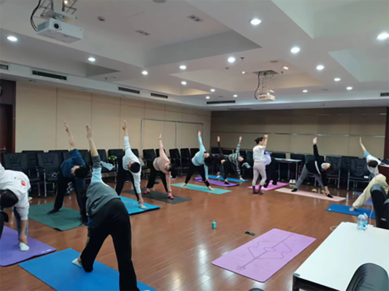 通過自身體位訓練,有效糾正了部分職工身體姿態長期存在的問題,塑造了形體,增強了力量,關節和肌肉的僵硬程度得到顯著改善,身體柔韌性普遍得到提升。伴隨著輕松愉悅的音樂,職工們通過呼吸控制練習,緩解工作生活中的壓力與焦慮,身心獲得平靜和放松。