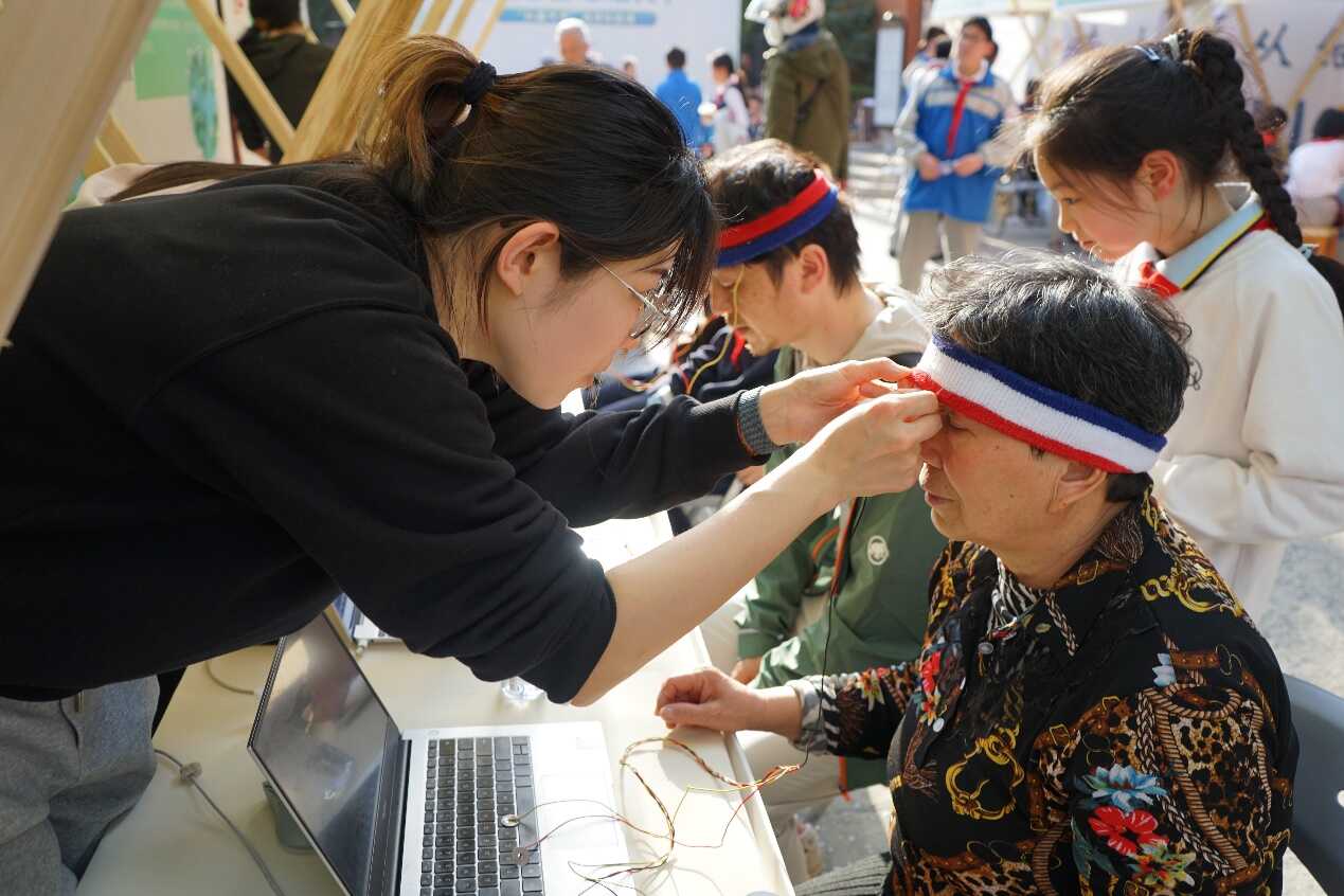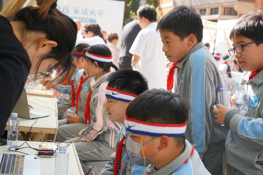 “腦智擘未來”科普市集聚焦腦科學領域,通過僵尸跳舞、腦電對抗、力量召喚閃電、斑馬魚的裙擺、腦電協作、眼控避障、腦功能水平測試等七個生動有趣的實驗,讓來自位育初中、建襄小學、徐匯一中心、高安一小的中小學生,以及街道的居民,初窺大腦的奧秘。系列實驗由腦智卓越中心科普協會根據日常科學實驗原創制作而成,實驗充分結合公眾對社交化、娛樂化、游戲化等科普內容的偏好,使得曾經“高冷”的專業操作,以更多元、更新潮的方式綻放科學的魅力。
