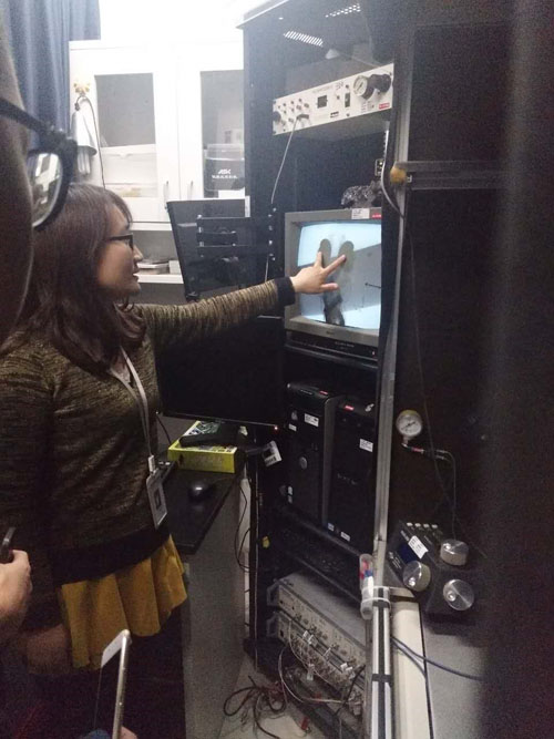 破開細胞膜,給予光刺激,記錄電位變化……一部電腦、一臺顯示屏、一臺顯微鏡,在專業人員的指導及耐心講解下,看似復雜的電生理實驗操作流程和圖像分析顯得清晰易懂。第一次近距離接觸這樣專業的設備及實驗流程,同學們在驚嘆的同時,也不斷地向研究員們提出自己的問題,了解神經元膜片鉗記錄電活動的目的和原理等,讓大家受益匪淺。