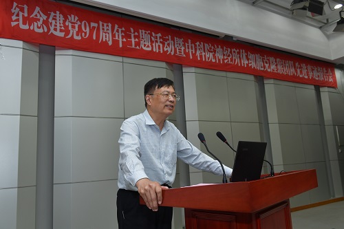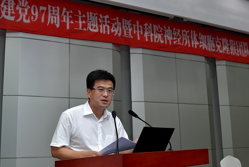 6月26日下午,紀念建黨97周年主題活動暨中科院神經所克隆猴團隊先進事跡報告會成功舉行,本次活動由市科技黨委、中科院滬區黨委、中科院神經所黨委共同主辦,市科技黨委書記劉巖,上海分院院長、分黨組書記、滬區黨委書記王建宇等出席會議。