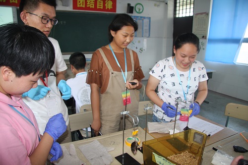 科普班的203名中學生分為三個組,每個組下設三個小班。志愿者分為腦疾病組、電生理組、腦功能組,每個組由10多名研究員、副研究員和博士生組成,三天輪流給三個不同班的中學生開設科普講座,并動手進行科普小實驗,普及科研知識、科研方法,以及科學思維方式。