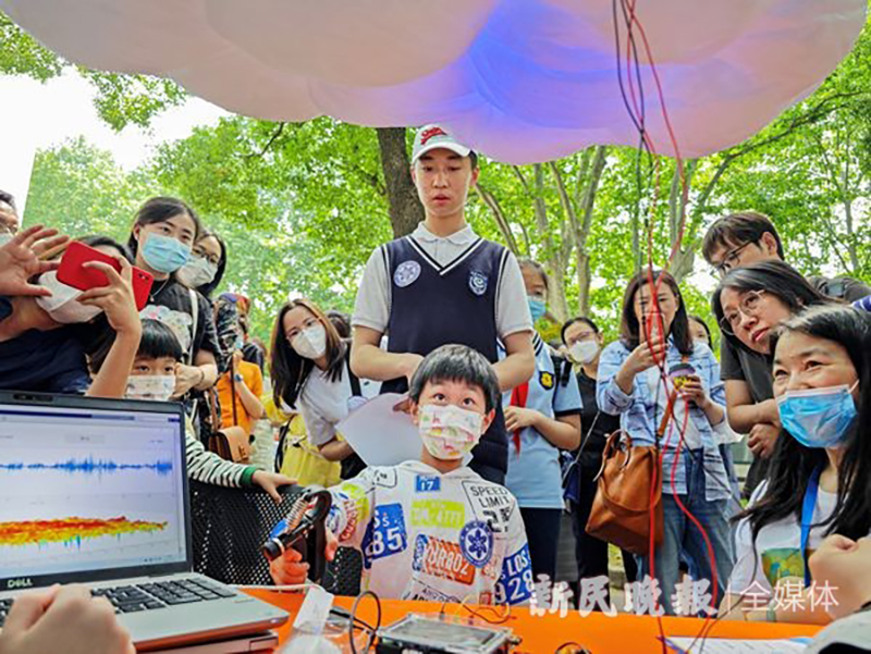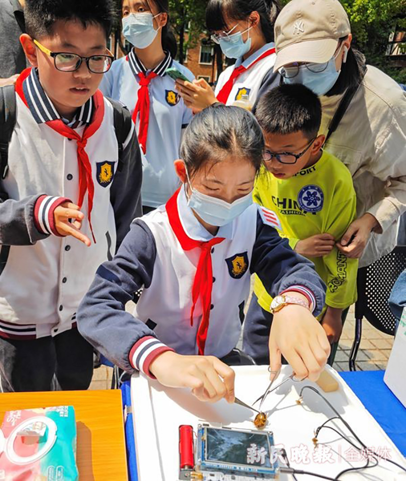 各個科學實驗的攤位前,烏壓壓都是好奇的小腦袋。孩子們嘰嘰喳喳,向小伙伴或爸爸媽媽炫耀著自己的科學收獲。13日下午,在中科院第十九屆公眾科學日,記者也走進岳陽路上的“腦智擘未來”科普市集,感受科學的火熱。