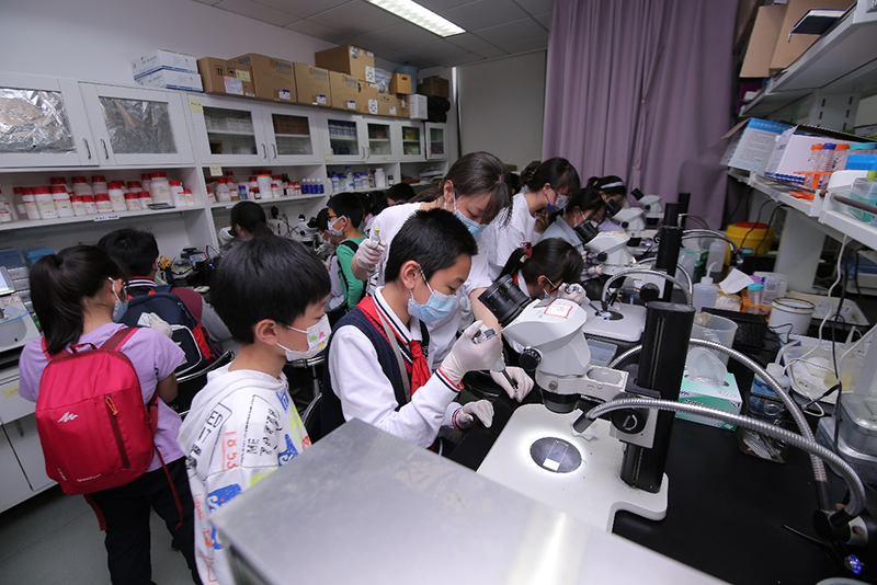 5月13日上午,神經(jīng)科學(xué)國家重點(diǎn)實驗室全面開放,其中研究神經(jīng)光學(xué)成像、離子通道功能調(diào)控機(jī)制、神經(jīng)環(huán)路與感覺信息處理、聽覺系統(tǒng)發(fā)育再生的四個研究組,為上海市110名中小學(xué)生精心準(zhǔn)備了“大腦衰老的奧秘”“相信光!了解光!”“癢癢癢”“小耳朵大世界”四個主題實驗室體驗。科普志愿者帶領(lǐng)大家聆聽科普講座,通過提問互動、親自動手等環(huán)節(jié),帶領(lǐng)大家體驗奇妙的神經(jīng)科學(xué)世界。