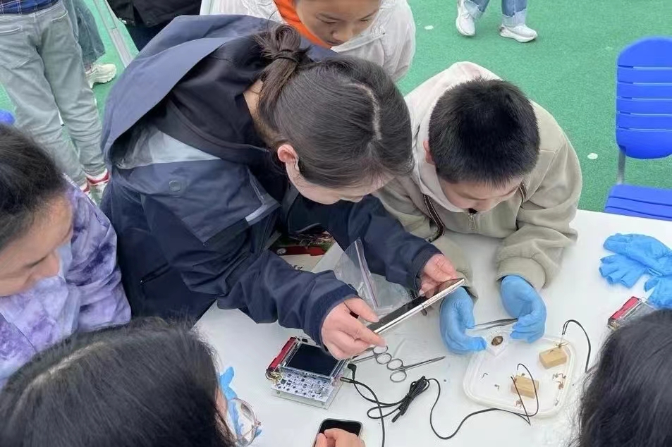 學校共建單位腦智卓越中心帶來的“腦功能水平測試”、“僵尸跳舞”、“假手錯覺”、“多感覺整合”等項目,吸引了眾多學生和家長參與體驗,也激發起學生對科學的熱情。