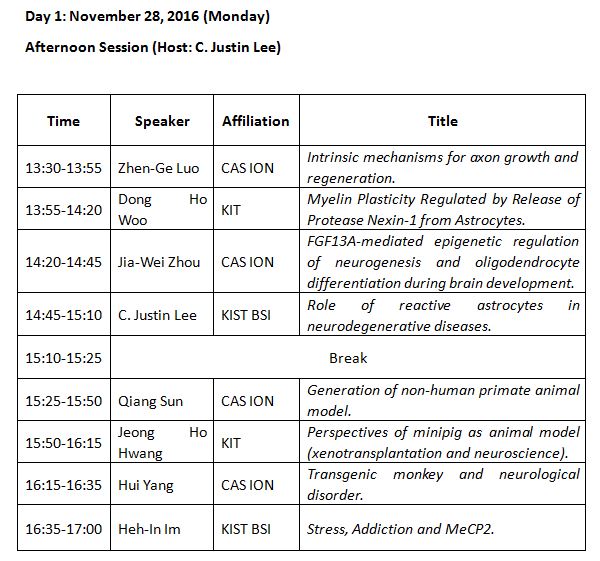 2016 CAS ION-KIST BSI Joint Symposium on Neuroscience